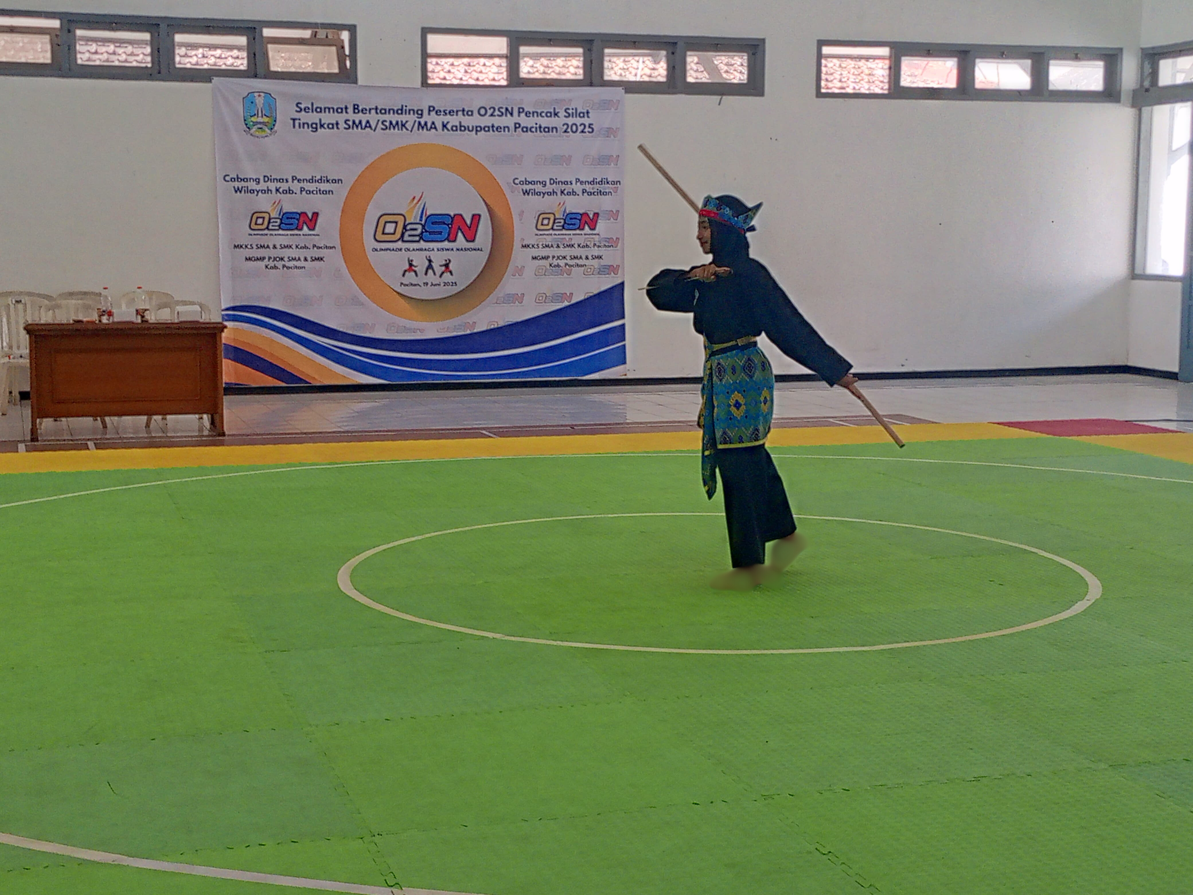 Pacitan - Gedung Yayasan Bhakti Ibu menjadi saksi penyelenggraan Olimpiade Olahraga Siswa Nasional (O2SN) cabang pencak silat jenjang SMA pada Kamis, 19 Juni 2025. Event bergengsi yang mempertemukan para atlet muda berbakat dari berbagai daerah untuk berkompetisi dalam arena olahraga beladiri tradisional.